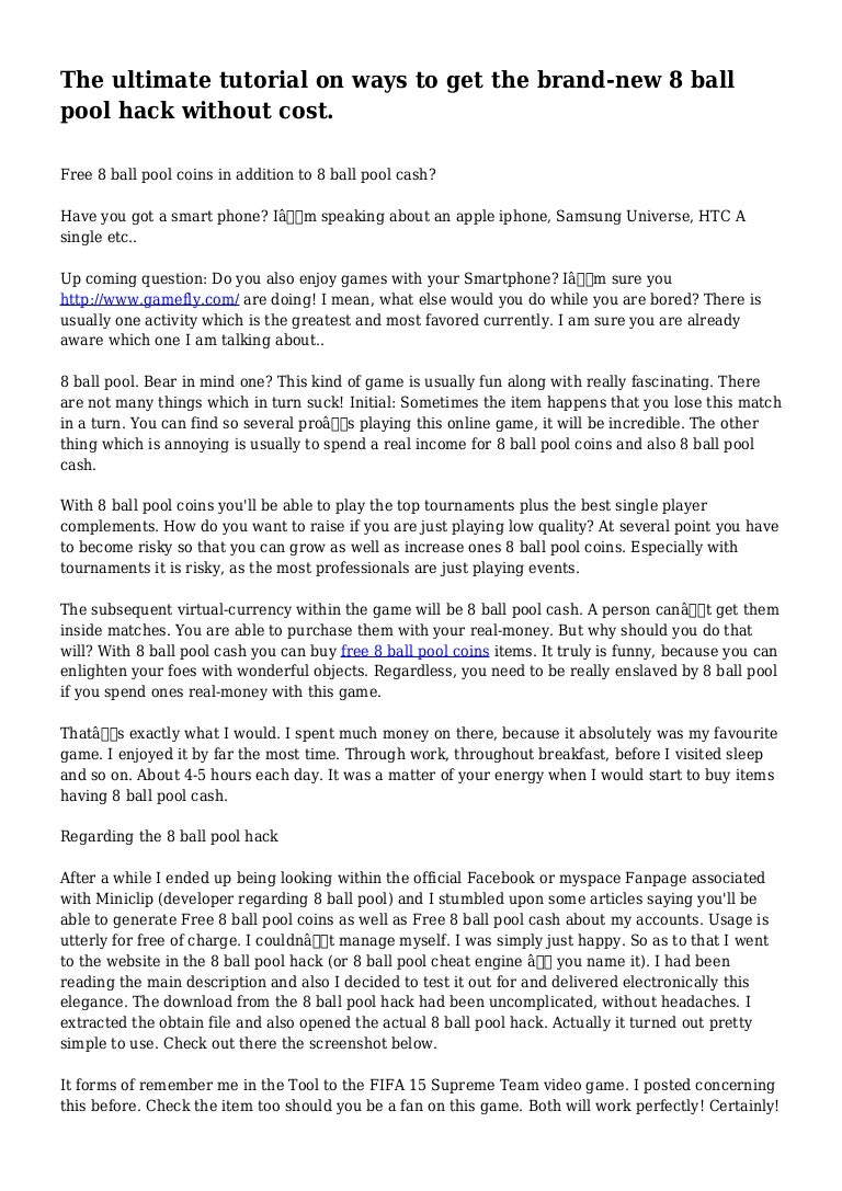 Unlimited coins and cash with 8 ball pool hack tool! 115 likes · 2 talking about this. It is quite difficult to win every match in this game. Most of the cheats will give you unlimited pool cash which is the most essential thing in the game, whereas there are some that can. 8 ball pool hack will generate cash and coins to your accounts. Use our latest hack for 8 ball pool. All of you know that to get better on 8 ball pool you will need a good cue. 100% working and tested on all devices. Generate unlimited coins for free !! Try it using my code and we'll each get $5 to spend on anything! Get money and coins and much more for free with no ads. Do not hesitate and try our 8 ball pool cheats right now. Created to help 8 ball pool.